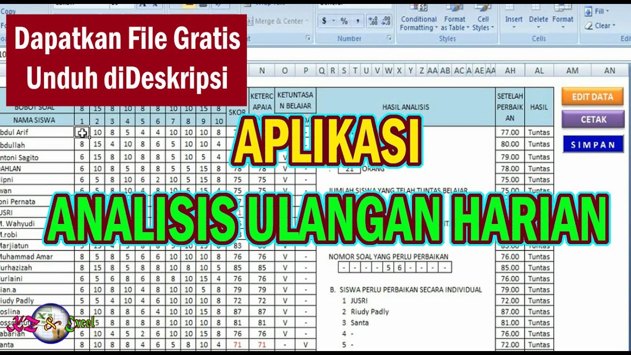 Berikut adalah langkah-langkah analisis ulangan harian: